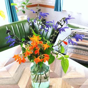 花壇のサルビアガラニチカとヒメヒオウギズイセンを摘んできました🌿