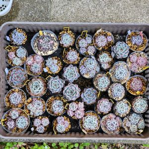 植え替えのあと水たっぷり吸って むっちりやけど よかいろしとる〜💕 この子のぎゅうぎゅう葉挿しっ子たち植え替えしちゃろ♪ 原種置いとっても交雑とかば どれも顔違いで販売しとったら信用ない 結局室内の桃黒とジェコルビ、チワワ、コロラタしかさいとらんけどコロラタは花粉を少し使ってみた ジェコルビ赤は最後に咲いて相手がおらんけん余ってカプセルに入れたチワワを付けてみた チワワ自家受粉してみればよかったと後悔