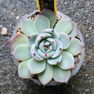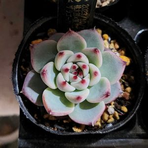 4-10℃☔のち☁ 北側軒下LED下でもまだ色付かんけど エッジ増えた〜🙌🏻💓 成長点が花芽になった子の子株を カットして根付かせとったら この子も成長点から花芽やん(꒪д꒪II