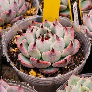 5-7℃☔後☁ 朝方より今が一番気温低い 1枚目、やっと本物に近い色で撮れた💓🙌🏻 4枚目はノバが入っとるみたいに 少し長葉で内巻きの爪💓 まだチビやけん何号にするか分からんけど ピンクの札を挿しちゃろっかね😍 スリット鉢を頼んだ時に札がでてきて 桃黒交配たちはピンクの札にする❣️