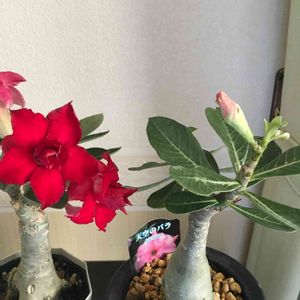 情熱的な大輪の赤「砂漠の薔薇」❤️ ヒラヒラの花びら 淡いピンクで可愛い「天空の薔薇」💕 どちらがお好み?