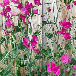 🌺スィートピーの花です。 網に絡ませて咲いていました。 和名 ジャコウレンリソウ (麝香連理草)