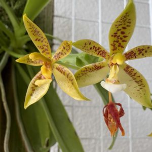 新入りさんその① 注文していたやまはる園芸のkenjiさんのところの蘭が届きました😆🎶 ありがとうございました🙇♀️ ファレノプシス コルヌ セルビ 🏷Phal.cornu-cervi 原種の胡蝶蘭 ノーマルタイプ 宇宙人ちゃんみたいな黄色とオレンジのお花が咲きます。 こんなに咲き進んでいたのね(笑)花茎がながい長〜い🤣 この花茎もユーモラス。 先端の蕾、咲くかしら。環境変わってシケちゃうかもですが、次を待てば咲かせられそうですね💓 しばらく出窓に置いて馴らします。