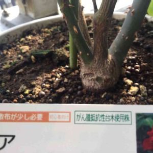 ムムム タグをふと見てみると 台木使用株って書いてある もう一つ株元が埋まってるってことなのか?植え替えた時は全く気がつかなかった ちょっと掘り返した方がいいのかな?