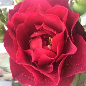 Odysseia オデュッセイア 作出 2013年 日本 木村卓功 系統 S シュラブ 交配 未発表 花色 紫がかった深赤 花形 波状弁咲き 花径 中輪 芳香 強香 ダマスク+フルーツにハーブ 開花 四季咲き 樹高 1.6m ロサオリ好きな方なら一株は育てているであろうオデュッセイア(*´ω`*) 咲き始めが早くてちょっと特徴的な花弁のウェーブが出ていないけど開花スタートしました💕✨✨ このバラは春や秋の深みのある赤もいいけど、真夏の強い陽射しの中でも花弁が焼けずに鮮やかな赤で咲くのがホントに綺麗なんです( *´艸`)💕💕 木立タイプとしてもつるバラとしても扱いやすく、硬めの枝はちょっと斜めに誘引するくらいでも花付き良く沢山咲いてくれます。側に行くとうっとりするくらい香りもいい。 ということでバラ好きな方々に声を大にして言いたいです。 一家に一本オデュッセイア❣️❣️ですよ(*´ω`*) あっ💦やだパクリって怒らないでください💦💦