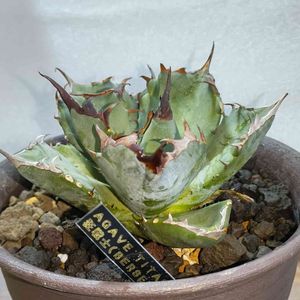 アガベ 狂戦士⚔️ Agave titanota Berserker 購入して撮ったのが1枚目です。 もうカッコよかったですね👍 1年経った様子が2枚目以降! 半年経った様子も撮っておいたのですが見つかりませんでした。 特徴的には鋸歯が外側にひらいて行く感じと聞きました!写真だと分かりづらいですが、 そんな特徴も出てきてます♪ 今後も成長が楽しみな株です🤝