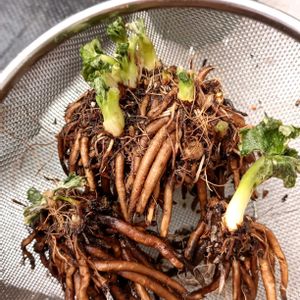 定点観測 ラナンキュラスラックスグレイシス 株分に挑戦 その2 この辺かなと 分け目を指で探っているうちにちょっと力を入れるとすぐに3つに分かれました 案ずるより産むが易し