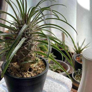 新しい多肉を追加 サボテン型なのにシダ系の葉が生えます。素晴らしいデザインです。 #パキポディウムゲアイー