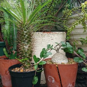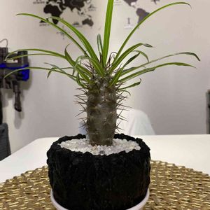 おはようございます😃 パキポディウム ゲアイーさんです。実生からまる2年、いい感じに育ってます。目指せ、5m😅