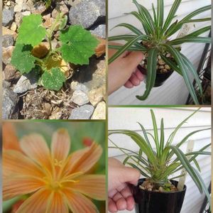 右2枚の写真 パキポディウムのゲアイーをお店で見つけたので買いました! ちょっと前に植物園の大きいやつを投稿したことがある亜阿相界 ああそうかいです‼️ パキポは相性良さそうだから調子に乗りましたよ(o´罒`o) 記録用に 左下はレウィシアのオレンジが咲いたので 左上は勝手に地面から生えてきたなぞつる植物 実は以前も生えてきて楽しみにしてたら何者かに抜かれちゃって また生えてきたから鉢上げしようかなと思います ちょっとゴーヤっぽいような キュウリではないってキュウリ育ててる方が言ってました もう少し涼しい日に作業やろう 今日も暑すぎる☀ 追伸。謎つる植物はカラスウリだって‼️ カラスウリ大好き(๑♡∀♡๑) カネフラさんにまた教えて頂きました(*>∇<)ノありがとう‼️ 私も調べたらこの葉っぱはカラスウリよ〜間違いないわ! それで鉢上げしないことにした!荒地の方が育ちそうだし 根を痛めちゃうと悪いから〜 どうぞあとはどなたか引っこ抜かないで下さいませ〜(๑ーㅅー๑)