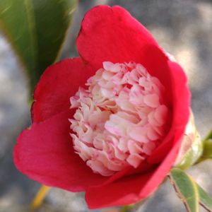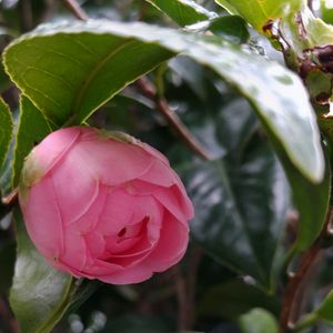 『乙女椿』 開花途中✨ 葉に護られて ふっくら ゆる~り 開きゆく✨ 美しい色合い✨ .