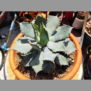 アガベじゃなくて、アロエ「雷神」冬の管理の悪さで葉がかなり短くなってしまった。その上、葉のでこぼこ模様が激しくなって、フォーカリアと間違えそう。 ちなみに、去年は年中かなり赤みを帯びていましたが、今年は植え替えてからご覧の通りの緑。色、違いすぎ。