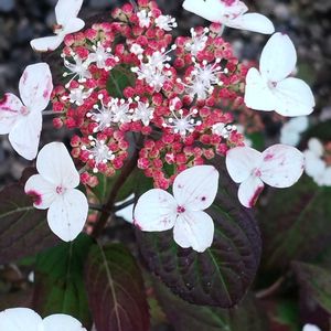 おはようございます きょうのお花のあじさい 我が家の常山アジサイ (碧のひとみ) やっと今朝一輪さいていました 秋には瑠璃色の美しい実がなるそうなので楽しみです🔵