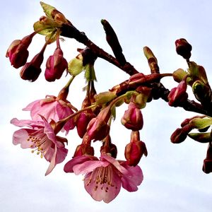 いつもご覧頂きどうもありがとうございます❣ うちの河津桜🌸ようやく咲き出しましたꔛᰔᩚ🙌💕 早くから蕾が膨らんで楽しみにしていましたが、雪⛄降ったりでようやくてす。でも昨年は3月1日とGSにアップしていたので今年の方がずっと早いです〜🌸😊 💜2枚目のツルニチニチソウも早くも咲いて·͜·♡ 💛折れたカランコエの挿し木もやっと咲いてきました⸜(*ˊᗜˋ*)⸝♡ᐝ 🩷夏の花のペチュニアも門扉で頑張って咲いています💪 お花から喜びや優しさ強さ明るさ… たくさんの癒しを貰っています🤗💖✨🎶