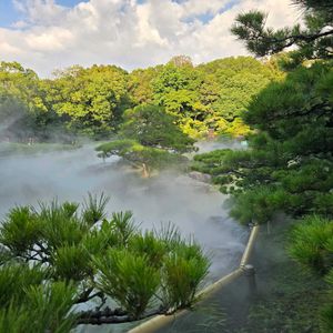 おはよ-ございますꕤ.(*´ `*).ꕤ 福岡県、大濠公園の日本庭園の池 ミスト?もやもや〜 公園内の美術館も いってきました〜