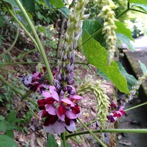 葛の花 一面に葛が茂っている。 大きな葉を払うと、咲いている。 咲いている。 渋い色合い。 花穂がかなり、長いよ。
