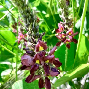 最近知ったお花、クズ😆 昨日史跡で職員さんが除草中でした🌿 よく見ると可愛い、藤を逆さにしたようなお花🍇😍 クズ(葛󠄀、学名: Pueraria montana var. lobata)は、マメ科クズ属のつる性の多年草です。 日本では、根を用いて食材の葛󠄀粉や漢方薬が作られ、万葉の昔から秋の七草の一つに数えられています🤗🍁