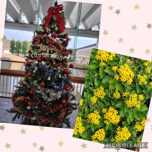 こんにちは😊 市の複合施設の エントランスホールには大きな クリスマスツリー🎄が飾られ 皆さまをお出迎えしています 正面の花壇には 今日のお花の イソギクが綺麗に咲いていました