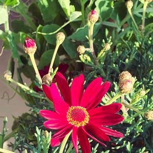 あーやっと開花🌺 10日かかりました😍 マーガレット 『ブリアンルージュ』💕 まだまだ蕾が沢山です♥︎︎∗︎*゚•*¨*•.¸¸♬♥︎︎∗︎*゚