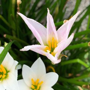 ゼフィランサス属 玉すだれ🌱🌱 真白い花が萎れて、段々桃色帯びる💖💖 この微妙な頃合いが好き😘
