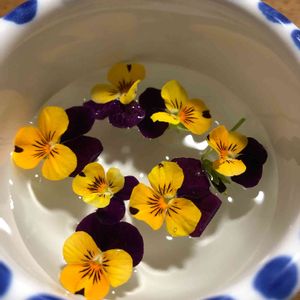 ビオラ💜💛 まだ小さい苗🌱に花がたくさん咲いたので摘みました(o^^o)