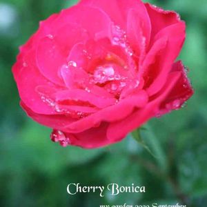 今朝のチェリーボニカです。雨に濡れた姿も可愛い(*˘︶˘*).。.:*♡