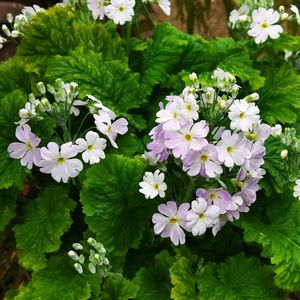 桜草 ウインティー ①ライムグリーンとサクラ ②③ サクラ 今朝の咲き具合です この所、しばらくの雨続きで、 避難場所がないものだから、花茎が折れたり、鉢底の枯れ葉にカビが生えたりと、お世話が大変でした。 今日は、晴天で園芸日和です しっかり、一鉢ずつ確認しようと思います☘️💚🩷💚