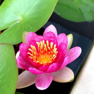 あきらめかけていたスイレン 咲きました❣️黄色だったのね。 メダカさんもスイレン鉢に移しました。 色々環境を変えてあげないと咲いてくれないって やっと、わかりました😅
