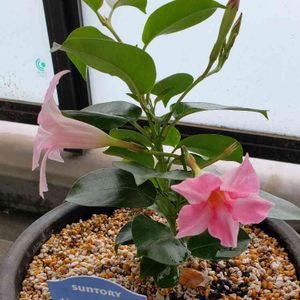 おはようございます☀😃 マンデビラさん、サンパラソルさん、揃い咲きです🤗