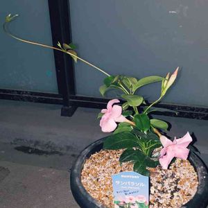 台風の影響で避難させて 心配しましたが、 なんとか落ちずに咲いています!🌸🌺 ツルがぐんぐん伸びますように。🌱🌿🌿🌿✨✨✨