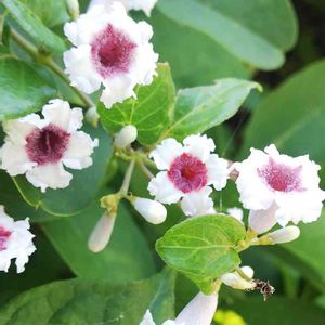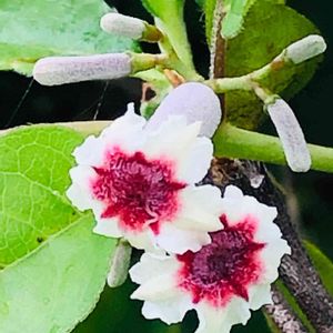 つる性で1センチ位の小さな花です 近くで撮ったらこんなに花弁ふさふさでした🌸 葉っぱを擦ったら臭うよと教えてもらったけど やっぱりそんなにクサイとは感じませんでした(^-^; 別名 ヤイトバナ、サオトメバナだそうです🌸