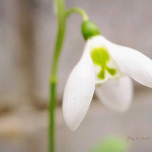 逆さハートみたいな、逆さうさちゃんみたいな緑の模様が可愛いෆ ̖́- 2輪目のスノードロップ🤍 たくさん増えて群生になったらいいな 😌💭