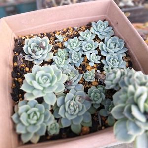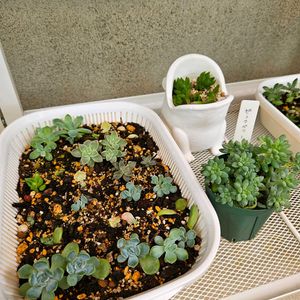 20250417 今日は風もなく穏やかな陽気です。曇りかと思ったら💦夜のうちに水やりしとけばよかったよ。今日は名無しちゃんシリーズ ①おまけ苗にしては立派な苗です。発根始めたけれどまだそんなに水吸えてない感じ💦スイッチ入れてね😁 ②こちらもおまけ苗。エッジの赤みが薄れてすっかり夏顔。ガッツリ根も生えてスイッチ入ってます😚👍白いのはトバレンシスらしいのですが発育不良でぶっちゃけよくわかりません💦そう言えば未発根かも💦 ③特価の徒長寄せ植えの仕立て直し。もうわちゃわちゃです😱ブロンズ姫くらいしかわかりません💦 ④名無し寄せ植えその2。なんか手前の苗がちょっと良い感じ🥰名前は分からないのですが😅