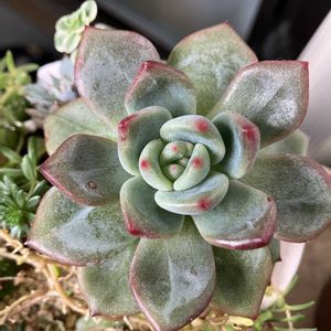 うちに唯一ある名無しのエケベリア きれい🤩 寄せ植えの中にいるのですがその寄せ植えが荒れ放題💦 なんとかしようと思いながら冬が来てしまいました😭 春にがんばろ💪