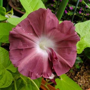 朝顔団十郎 昨年朝顔市で買った朝顔の種を今年蒔きました。 7月に入った頃遅かったので蔓は伸びても花芽もあまりなく急に秋めいてしまい諦めかけていたのに今朝咲いてました🌸 嬉しい😆