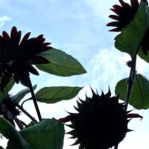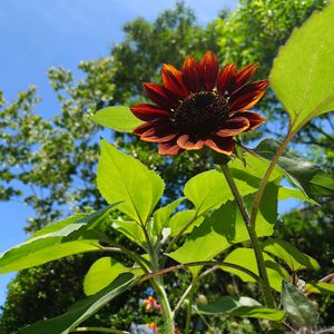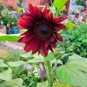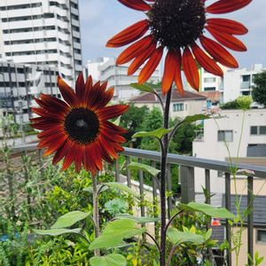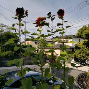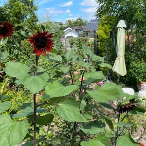 ワインレッドの魅力的なヒマワリ🌻 2メートルを超える高さで咲いています✨