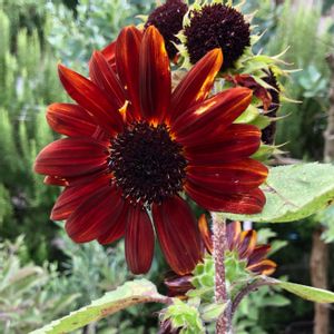 ヒマワリ クラレット🤎 先日咲いたヒマワリ、お隣さんも咲きました。 ん、色がちょっと違う⁉️ 明るめになってる😊