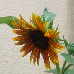種から育てたヒマワリ 双葉の頃、徒長してしまって誘引しようとしたらどれもこれもバキバキ折ってしまい一本しか残らなかった(粗忽者) 本当はもっと濃いワインレッドになる予定だったんだけどな