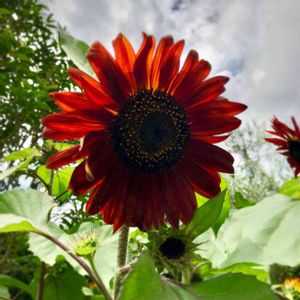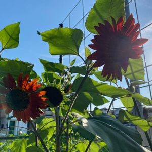 ひまわりのクラレットが満開です✨ 花の中心や茎まで黒いのと、花びらが黒から赤へのグラデーションで裏側が黄色なので、庭の中でもとても目を引いて素晴らしく綺麗です。 初めて育てたけど、思ったより大きくて2mを越えてるのもあります。 このヒマワリがなくなると庭がとても寂しくなりそう… とても気に入ったので、来年も育てるの決定です✨