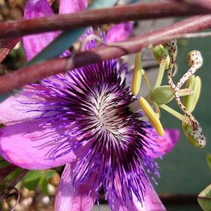 トケイソウ ベロッティ 昨日のトケイソウのお花に 間に合わなくて 去年のpic使ったけど 今日 2つ初開花してくれました(*´艸`*) ガクがビンクと白の交互の配色になるはずなんだけど 日差しで同じ色になってます(*^^*)繊細で 可愛くて トケイソウ大好きです♥