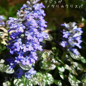 午後から雨の予報が 昨夜も今朝も雨☂️ ①② アジュガ メタリカクリスパ 寄植え予定が 籠にそのまま😅 ③ アジュガ ディクシーチップ トリカラーの葉とか スッキリ立ち上がる花穂が特徴的🎵 ④ 地植え2年目アジュガ 少し遅れて咲き始めました💙