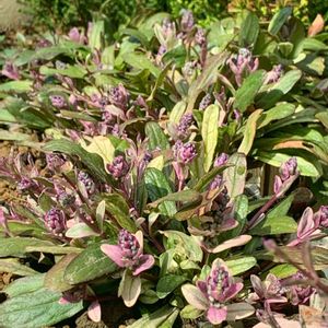 もう少しで咲きだしそうな アジュガ ディキシーチップ