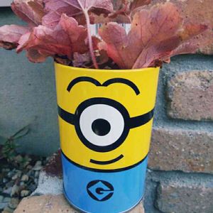 Gunkoさんの、ミニオン祭りに参加しまぁす❗お祭り~ワッショイ🎶🎶 我が家にはミニオンが居ないので、ミニオン似のリメ缶を作って、センペル寄せをしてみました。 似てないけど許してぇ~😅