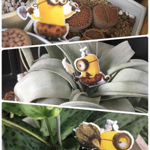 🏮ミニオン祭り🏮 うちには人形がないので、ぷくぷくシールで(≧︎艸≦︎)y💛💛💛 色んなところに出没‼️ あーそれはリトープスだから、割らないで‼️‼️‼️
