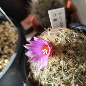 3種類、サボテンの花がさきました。\(^o^)/ 寒い外組 頑張ってくれました。 ありがと〜💕 白翁玉 わが家で唯一長く細い花びらを付け綺麗なピンク色で、咲いてくれます とげの中では次の蕾が待機しています w5cm H3cm 花の長さ4.5cm 白鯱 可愛らしいサボなのに次から次と蕾が上がってきます。何処にその力があるのか不思議です あまり咲かせると宜しくなく蕾を取ったほうが良いと、ありましたが ………取れない、できない、可愛すぎて😰 w3.5cm H2.5cm まさにマミラリアの咲き方、花輪😍 名前………忘れてしまいました😓 頑張って棘の中にある蕾が上がってきて長く花を、楽しませてくれます 蕾のまま咲かないサボもあるのに この寒さのかな咲くサボは凄い‼️
