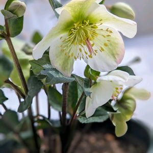 今朝は雪が積もって冬景色❄ クリスマスローズ モーリーズホワイト🤍💚 夜は室内に避難です。 素敵な週末となりますように❣️