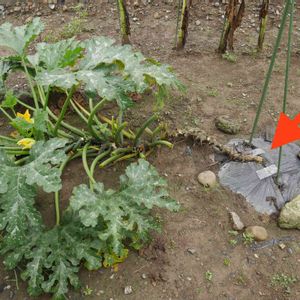 脱線しまくるズッキーニの図。。。 ※矢印部分が根っこ 葉っぱを支柱に誘引していましたが、反抗期なの?ってくらい言うことをきいてくれませんでした😂 今のところの収穫数は8本です。 10本超えたかったけどもう時期も過ぎてきたから難しいかなー💦 まだ花は咲くけど、連日の雨で人工授粉が成功しない😢 まぁ初挑戦にしてはまずまずな結果かな?