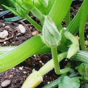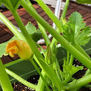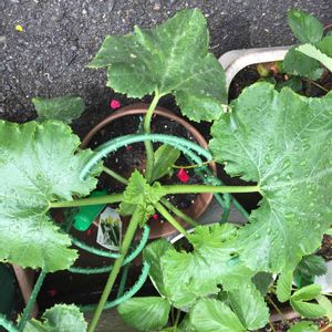 ズッキーニ 🥒花芽が出てきたので、小さい鉢から大きい鉢に植え替えました👍😊🙆♂️