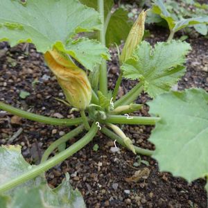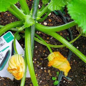 うちの庭先に植えたズッキーニが、ぼちぼちと実をつけています。