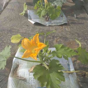 ズッキーニにおっきい雌花が咲きました^ - ^ でも、雄花がない💦( ̄◇ ̄;)